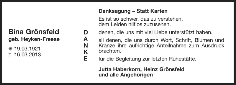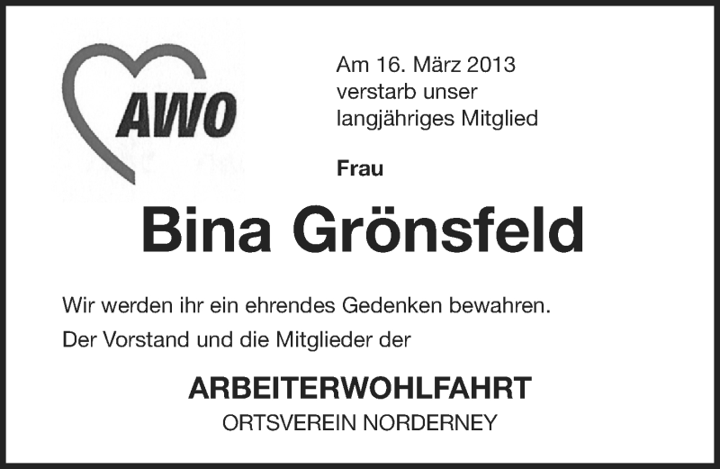 Hier finden Sie alle Traueranzeigen aus der Zeitung, die bisher für Bina Grönsfeld erschienen sind. Weitere Traueranzeigen, die in der Zeitung erscheinen, werden hier ebenfalls aufgelistet