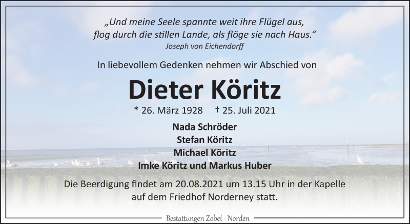 Hier finden Sie alle Traueranzeigen aus der Zeitung, die bisher für Dieter Köritz erschienen sind. Weitere Traueranzeigen, die in der Zeitung erscheinen, werden hier ebenfalls aufgelistet