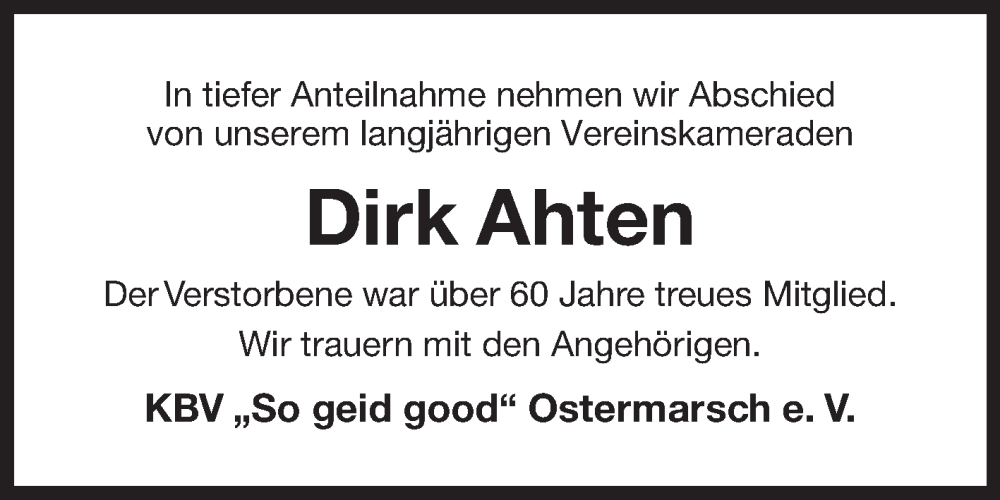 Hier finden Sie alle Traueranzeigen aus der Zeitung, die bisher für Dirk Ahten erschienen sind. Weitere Traueranzeigen, die in der Zeitung erscheinen, werden hier ebenfalls aufgelistet