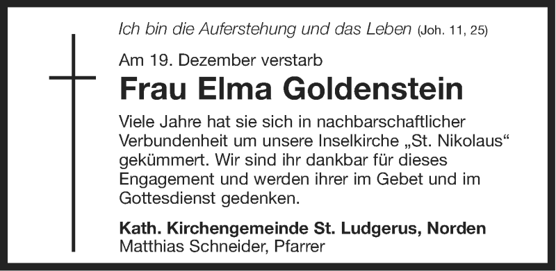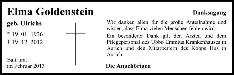 Hier finden Sie alle Traueranzeigen aus der Zeitung, die bisher für Elma Goldenstein erschienen sind. Weitere Traueranzeigen, die in der Zeitung erscheinen, werden hier ebenfalls aufgelistet