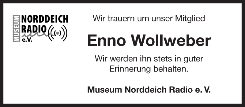 Hier finden Sie alle Traueranzeigen aus der Zeitung, die bisher für Enno Wollweber erschienen sind. Weitere Traueranzeigen, die in der Zeitung erscheinen, werden hier ebenfalls aufgelistet