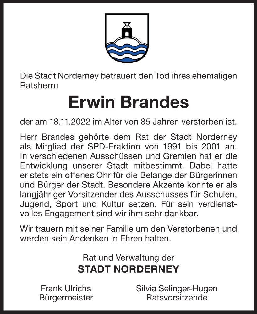 Hier finden Sie alle Traueranzeigen aus der Zeitung, die bisher für Erwin Brandes erschienen sind. Weitere Traueranzeigen, die in der Zeitung erscheinen, werden hier ebenfalls aufgelistet