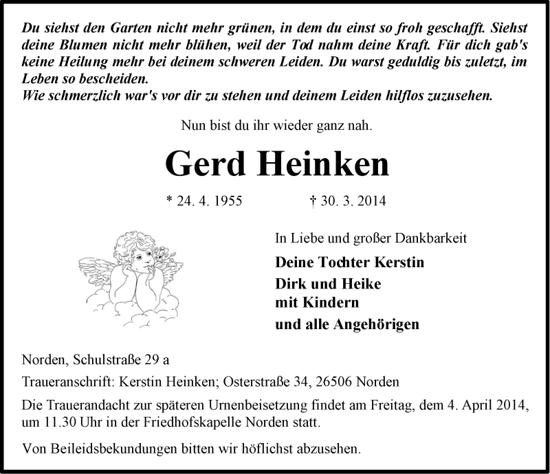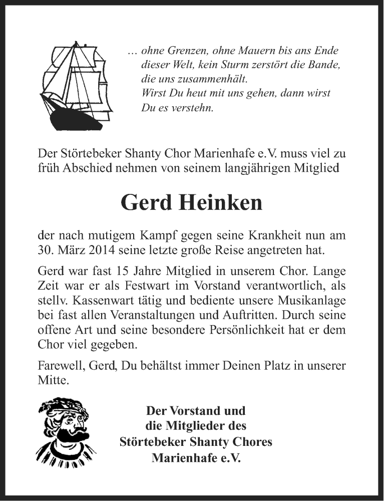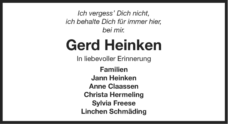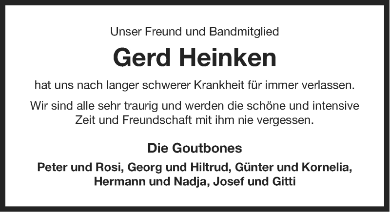 Hier finden Sie alle Traueranzeigen aus der Zeitung, die bisher für Gerd Heinken erschienen sind. Weitere Traueranzeigen, die in der Zeitung erscheinen, werden hier ebenfalls aufgelistet