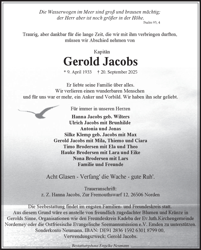 Hier finden Sie alle Traueranzeigen aus der Zeitung, die bisher für Gerold Jacobs erschienen sind. Weitere Traueranzeigen, die in der Zeitung erscheinen, werden hier ebenfalls aufgelistet