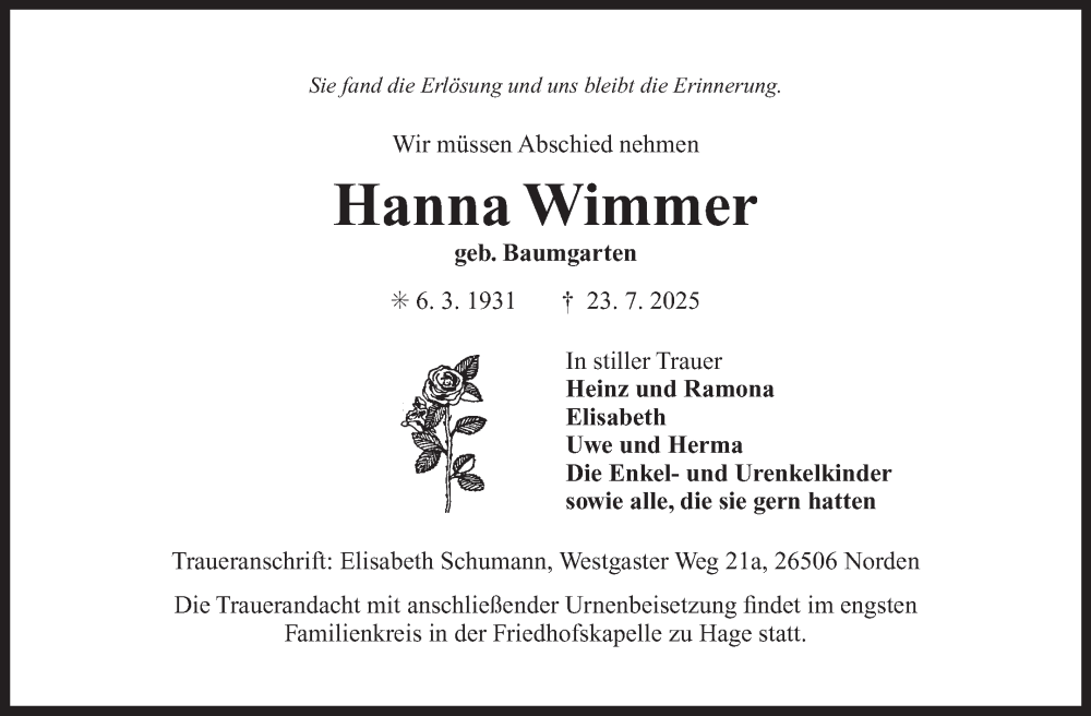 Hier finden Sie alle Traueranzeigen aus der Zeitung, die bisher für Hanna Wimmer erschienen sind. Weitere Traueranzeigen, die in der Zeitung erscheinen, werden hier ebenfalls aufgelistet
