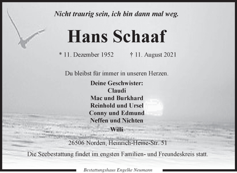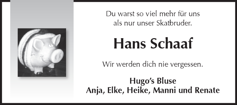 Hier finden Sie alle Traueranzeigen aus der Zeitung, die bisher für Hans Schaaf erschienen sind. Weitere Traueranzeigen, die in der Zeitung erscheinen, werden hier ebenfalls aufgelistet