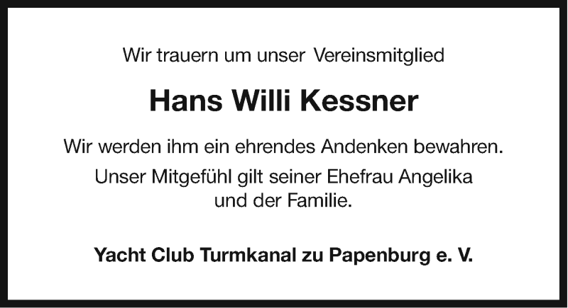 Hier finden Sie alle Traueranzeigen aus der Zeitung, die bisher für Hans Willi Kessner erschienen sind. Weitere Traueranzeigen, die in der Zeitung erscheinen, werden hier ebenfalls aufgelistet