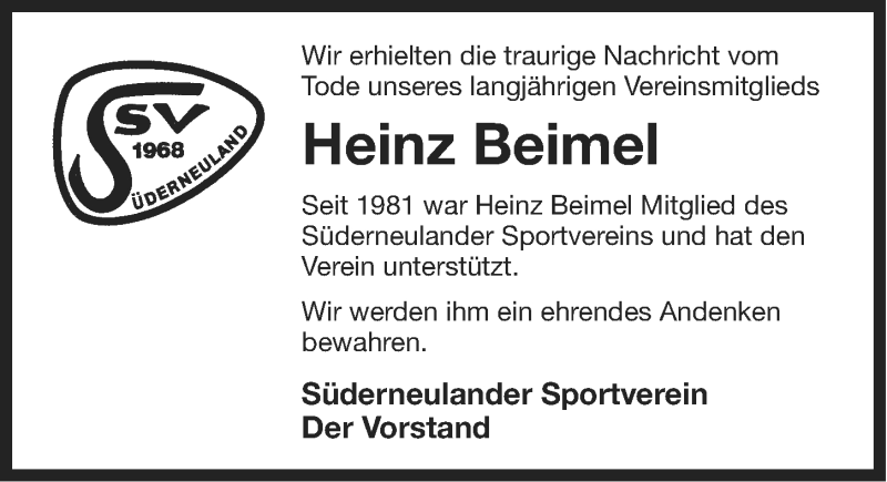 Hier finden Sie alle Traueranzeigen aus der Zeitung, die bisher für Heinz Beimel erschienen sind. Weitere Traueranzeigen, die in der Zeitung erscheinen, werden hier ebenfalls aufgelistet