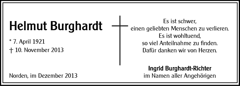 Hier finden Sie alle Traueranzeigen aus der Zeitung, die bisher für Helmut Burghardt erschienen sind. Weitere Traueranzeigen, die in der Zeitung erscheinen, werden hier ebenfalls aufgelistet