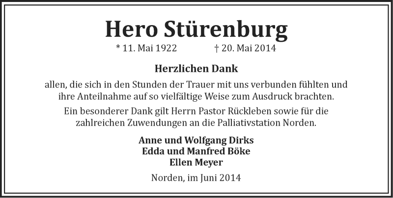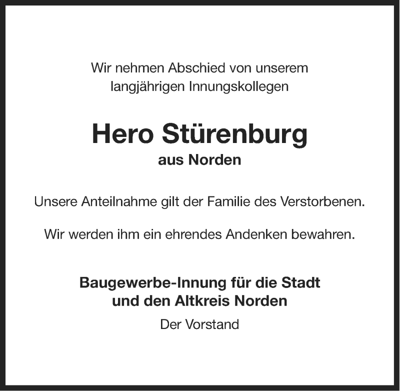 Hier finden Sie alle Traueranzeigen aus der Zeitung, die bisher für Hero Stürenburg erschienen sind. Weitere Traueranzeigen, die in der Zeitung erscheinen, werden hier ebenfalls aufgelistet