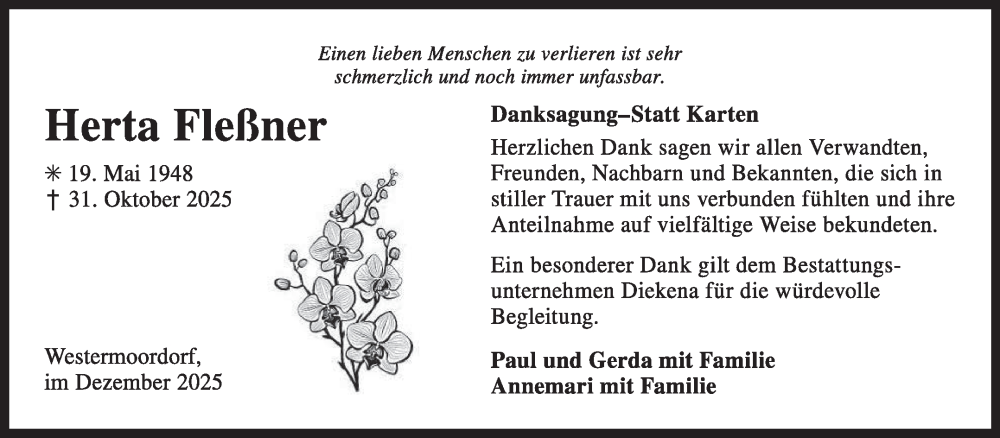Hier finden Sie alle Traueranzeigen aus der Zeitung, die bisher für Herta Fleßner erschienen sind. Weitere Traueranzeigen, die in der Zeitung erscheinen, werden hier ebenfalls aufgelistet