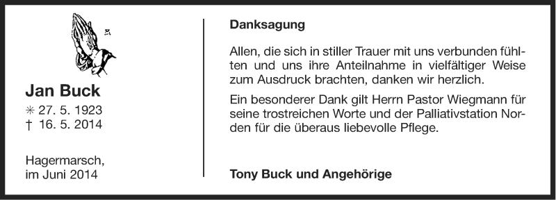Hier finden Sie alle Traueranzeigen aus der Zeitung, die bisher für Jan Buck erschienen sind. Weitere Traueranzeigen, die in der Zeitung erscheinen, werden hier ebenfalls aufgelistet