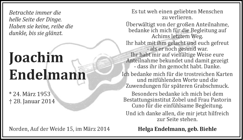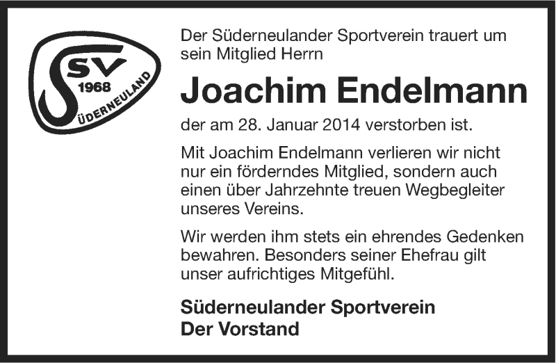 Hier finden Sie alle Traueranzeigen aus der Zeitung, die bisher für Joachim Endelmann erschienen sind. Weitere Traueranzeigen, die in der Zeitung erscheinen, werden hier ebenfalls aufgelistet
