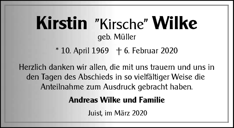 Hier finden Sie alle Traueranzeigen aus der Zeitung, die bisher für Kirstin Wilke erschienen sind. Weitere Traueranzeigen, die in der Zeitung erscheinen, werden hier ebenfalls aufgelistet