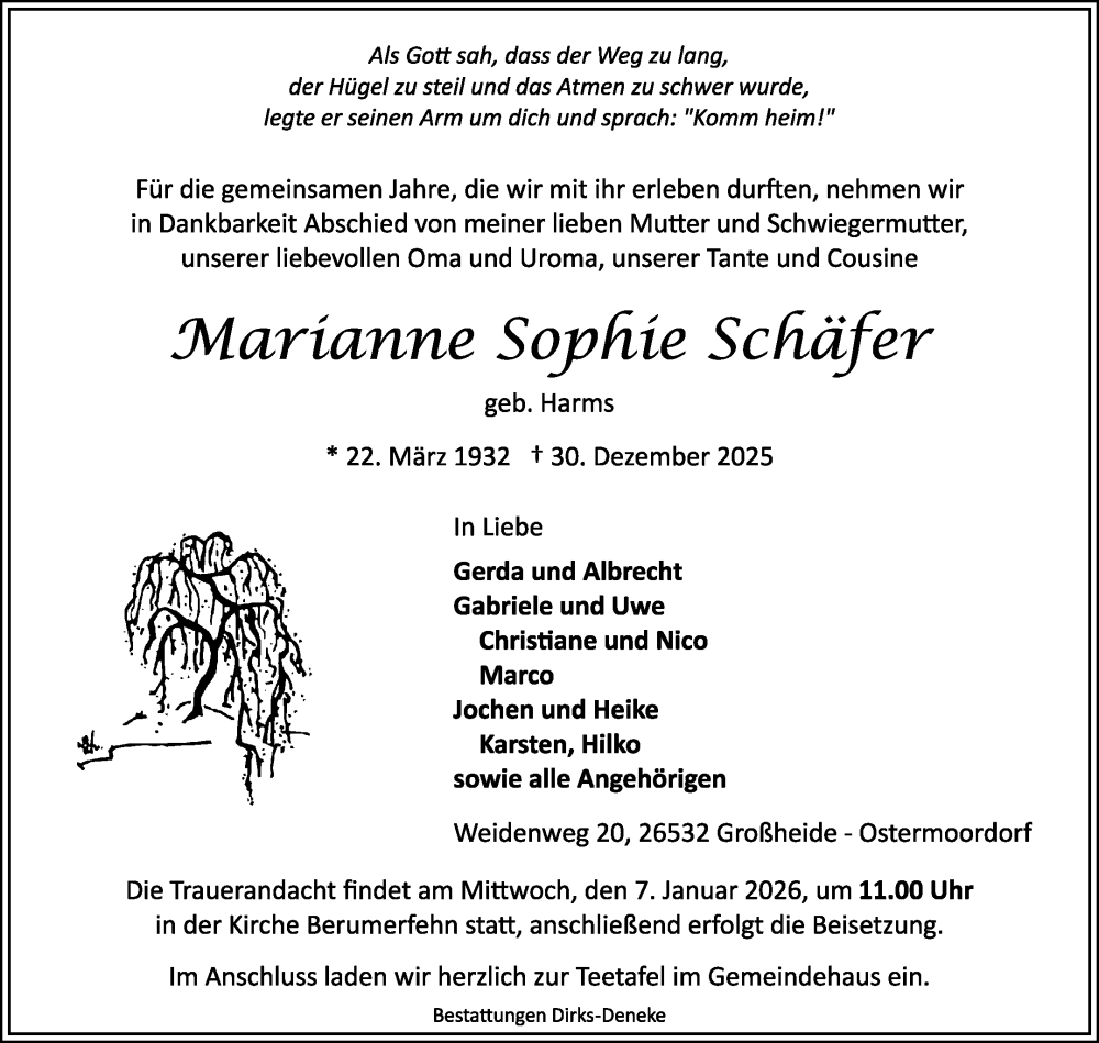Hier finden Sie alle Traueranzeigen aus der Zeitung, die bisher für Marianne Sophie Schäfer erschienen sind. Weitere Traueranzeigen, die in der Zeitung erscheinen, werden hier ebenfalls aufgelistet