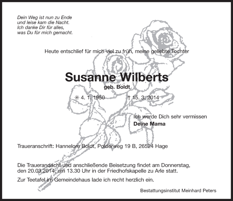 Hier finden Sie alle Traueranzeigen aus der Zeitung, die bisher für Susanne Wilberts erschienen sind. Weitere Traueranzeigen, die in der Zeitung erscheinen, werden hier ebenfalls aufgelistet
