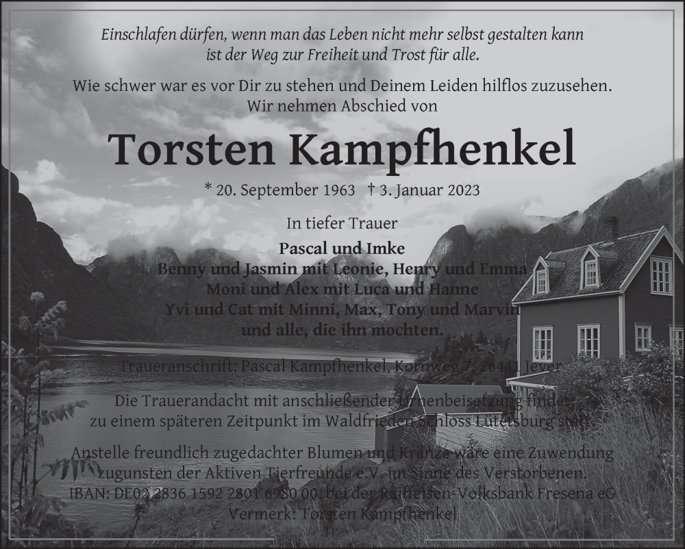 Hier finden Sie alle Traueranzeigen aus der Zeitung, die bisher für Torsten Kampfhenkel erschienen sind. Weitere Traueranzeigen, die in der Zeitung erscheinen, werden hier ebenfalls aufgelistet