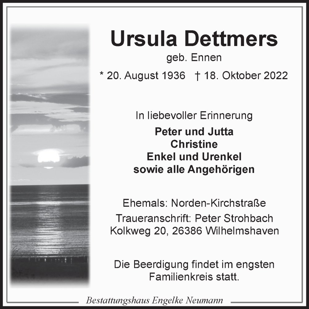 Hier finden Sie alle Traueranzeigen aus der Zeitung, die bisher für Ursula Dettmers erschienen sind. Weitere Traueranzeigen, die in der Zeitung erscheinen, werden hier ebenfalls aufgelistet