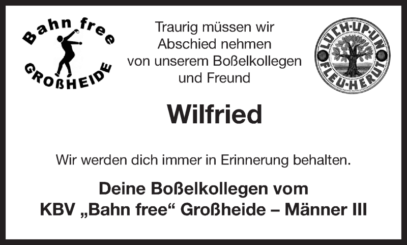 Hier finden Sie alle Traueranzeigen aus der Zeitung, die bisher für Wilfried erschienen sind. Weitere Traueranzeigen, die in der Zeitung erscheinen, werden hier ebenfalls aufgelistet