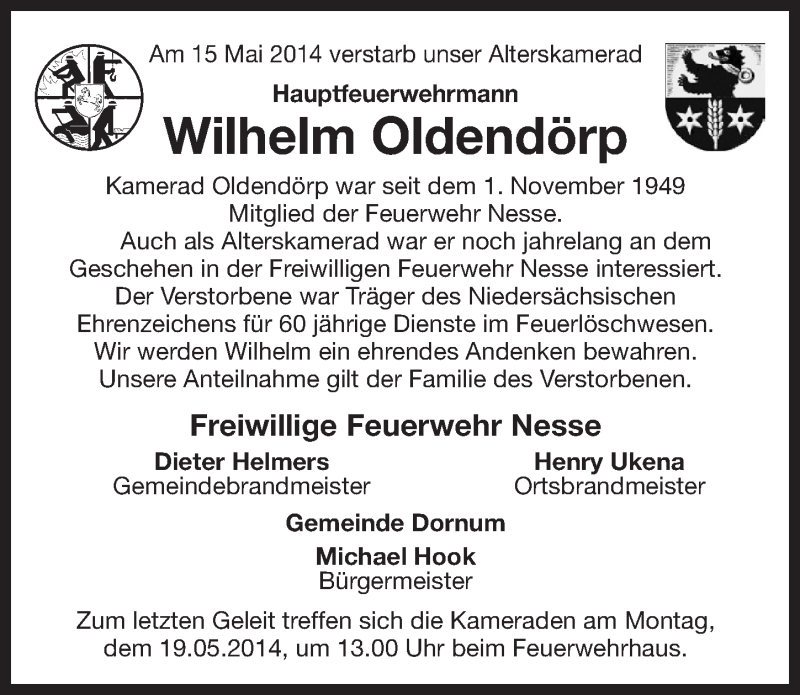 Hier finden Sie alle Traueranzeigen aus der Zeitung, die bisher für Wilhelm Oldendörp erschienen sind. Weitere Traueranzeigen, die in der Zeitung erscheinen, werden hier ebenfalls aufgelistet