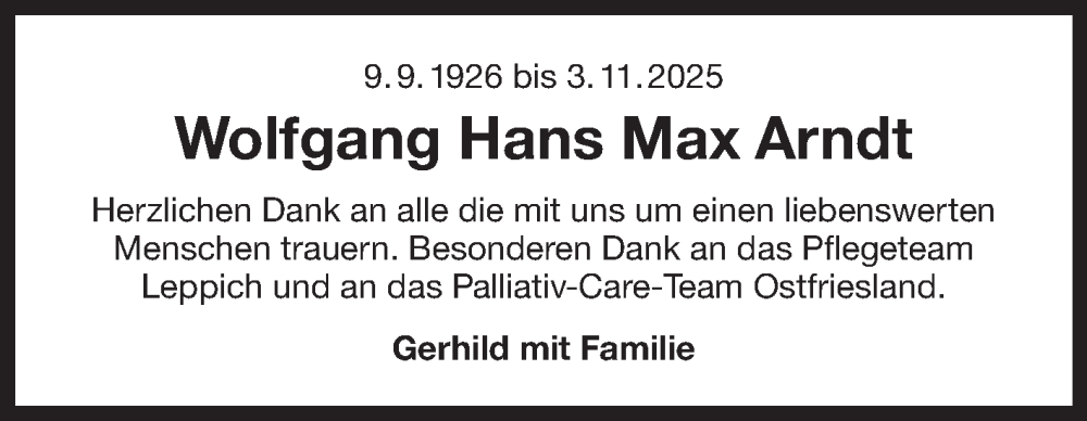 Hier finden Sie alle Traueranzeigen aus der Zeitung, die bisher für Wolfgang Hans Max Arndt erschienen sind. Weitere Traueranzeigen, die in der Zeitung erscheinen, werden hier ebenfalls aufgelistet